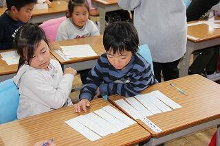 短冊カードを使って文を並べて分かりやすい文章を作る学習です。