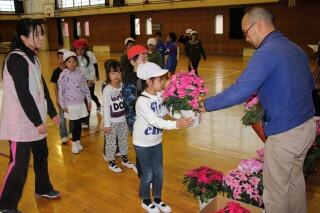 各クラスの代表児童による二学期の振り返りや、三学期のめあてが発表されました。