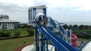 水平線がきれい。海が見える広場で遊ぶって最高ー!!