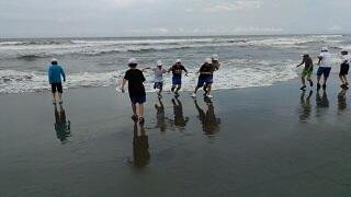 砂浜活動。足にからみつく海水が気持ちいいね。
