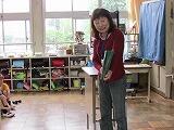 一人あたり2~3回は一人で言う台詞があり、一人一人が声をはらないと成功しない発表会…。入学してから全校の前で発表するのは初めてなので、練習の時からドキドキしていたようですが、みんなの気持ちを一つにして、しっかりした声で発表することができました。聞いていた、4年生のお姉さんから「リズムや動きがあってよかった」と感想を言ってもらい、達成感いっぱいの笑顔を見せていました。作ったお面をかぶり、みんなで考えた動作をつけて踊るかわいい1年生でした。