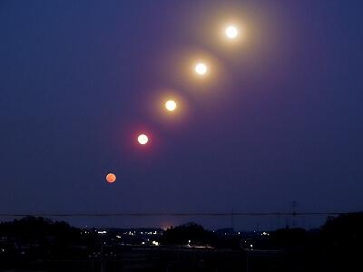 スーパームーン 投稿日時 : 2020/04/09 三鴨小6年 カテゴリ:6年生 昨夜のお月様は、地球との距離がとても近かったそうです。いつもの満月よりも大きく見えました。月は満ち欠けをしますが、満月の後、どのあたりから欠け始めるのでしょうか?天気が良ければ、ぜひ月の観察をして、自分の目で確かめてください。満月が東の空を上る様子です。10分おきに撮影しました。ちなみに月の出は、18:20でした。今夜のお月様が顔を出すのは、何時ごろでしょう?(*^^*) {{options.likeCount}} {{options.likeCount}}