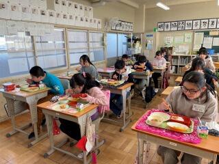 給食委員の5・6年生が、それぞれの役割を果たしました。