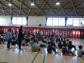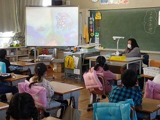 後ろの席の児童が、絵を良く見ようと立ち上がり、楽しそうに聞く姿も見受けられました。