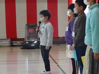 代表児童の発表では,5年生が,3学期の抱負をしっかりとした態度で発表することができました。