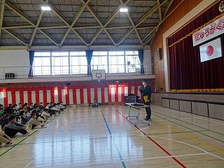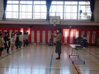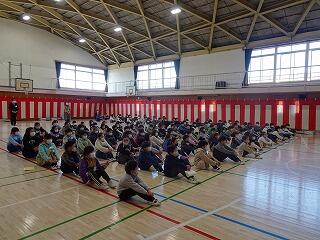 始業式はオンラインの形で行いましたが,今日の終業式は体育館で全員参加で行いました。