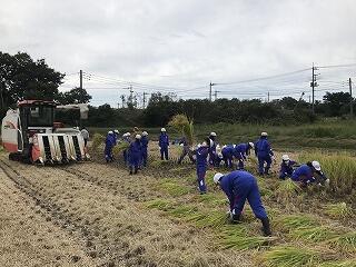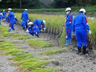 稲の刈り方を教わったら、みんなで協力して140株の稲を刈りました。