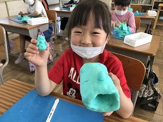 今日は、ねんどを丸める技とのばす技の2つを覚えて、楽しく作品を作りました。