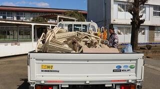 体育館北側に置かれていた粗大ごみをトラックに積み込みました。