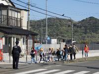 多くの地域の方々に見守られながら、子供たちが元気に登校しました。
