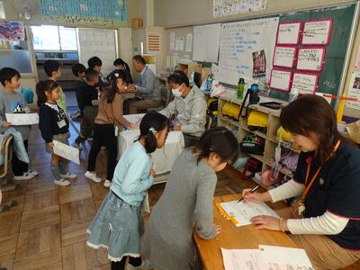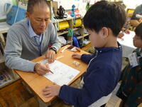1年生は今までの算数の時間で、「3つの数のたしざんひきざん」を学習してきました。1年生にとって初めての、足し算引き算の技能だけでなく、文章の正しい読み取りまで必要な「難問」です。スペシャル学習として、みかもっ子タイムに、校長先生、教頭先生、佐藤先生、土屋先生に来ていただき、たしかめ問題の答え合わせに取り組みました。スペシャルメンバーの丸付け屋さんに、みんな大喜びです。