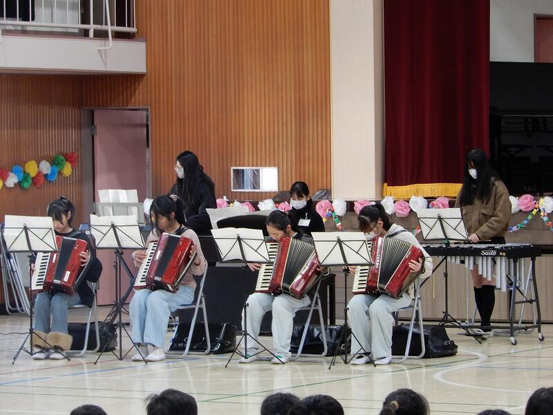 6年生からは,会を開いてもらったことへのお礼として,八木節の演奏を披露してもらいました。