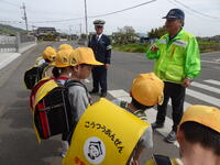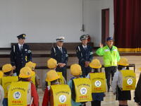 三鴨駐在所のおまわりさん、交通指導員さんをお招きし、交通安全教室が行われました。