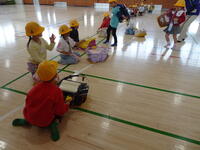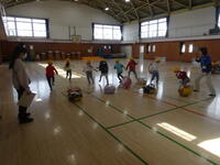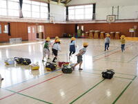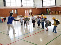 次に、防犯ブザーの使い方を確認しました。「助けて―!!」と大声で叫び、防犯ブザーを鳴らして、ランドセルを脱ぎ捨てて走ります。みんな、真剣に練習し、素早く行動できていました。
