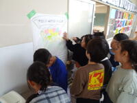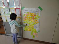 今週は、人権週間です。さっそく4年生のいいところを見付け、花のカードに書き、4年生の「いいとこ木」に貼りにいきました。先日行われた持久走大会でも、1・2年生のコースのために校庭の水を取り除いてくれた5年生に対して、花のメッセージカードを書き、5年生の「いいとこ木」に花を咲かせていました。