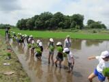 15日(木)、天候にも恵まれ、また地域の方のご協力により、田植体験をさせていただきました。思うように動かない足に苦戦しましたが、一株ごとに苗を植えました。中には担当の苗が終わるまであきらめず頑張ってくれた子も。普段できない貴重な体験をしたことで、生産することの大変さや喜びを学ぶことができました。