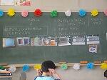 黒板には,写真入りで,給食の配膳の仕方が説明されていました。