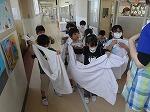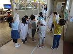 給食当番が着ていた白衣も,みんなで一緒に片付け方を説明してもらっていました。