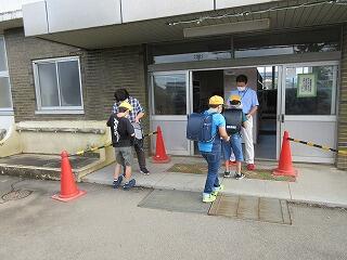 2学期は、緊急事態宣言発令の中スタートしました。そこで、児童が校舎に入る前の昇降口前で体調チェックを行っています。毎朝お忙しい時間に、ご家庭でのお子様の体調チェックにご協力いただきありがとうございます。