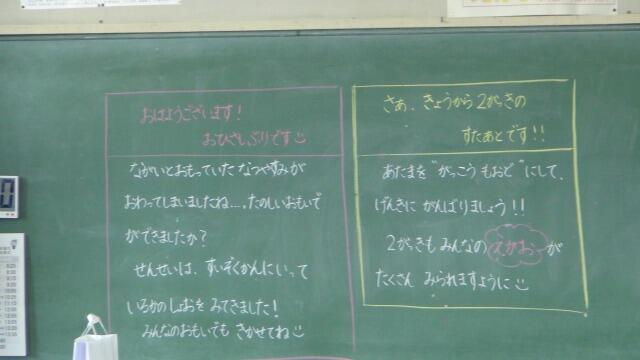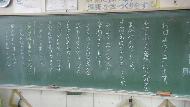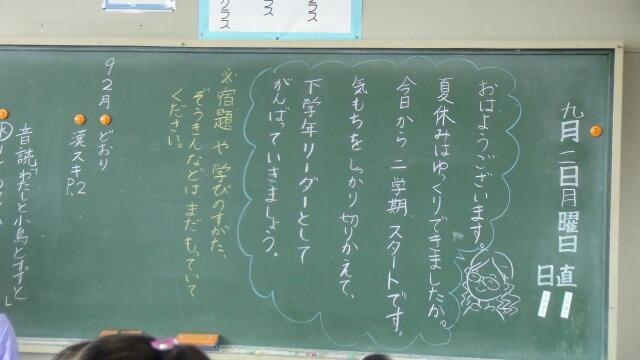 2学期が始まりました。各教室の黒板には各担任の先生のメッセージが書かれていました。