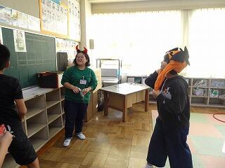 外国語の活動の中で、ALTと一緒にハロウィンの文化に親しみ、ゲームを楽しみました。