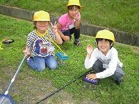 新井神社周辺に虫取りに出かけました。初めての校外学習!みんな待ちに待った日が来てうきうきです!虫取り網とかごを持って出発です!