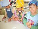 そのサツマイモを「早く食べたい!」という子どもたちは、お料理をする日を待ち望んでいました絵文字:ハート家庭科室で一人一人おっかなびっくり包丁を使ってサツマイモを切り、大きな鍋でゆでました。温かいほかほかのサツマイモにバターと砂糖を入れ、袋の上からモミモミつぶしました。その温かさと感触を楽しみ、最後はラップでキュッキュッと茶巾しぼり風に。