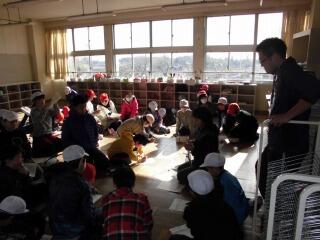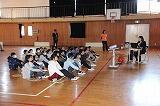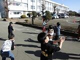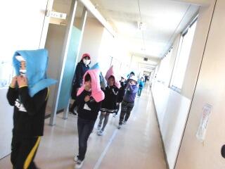 実際は2時間目終了後の休み時間に実施されました。地震の後、家庭科室から出火という設定です。