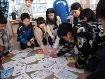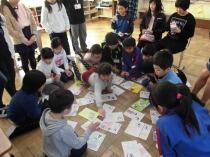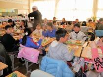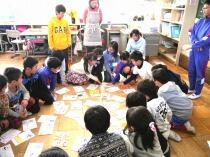 毎年ふれあい給食の時間には給食カルタで楽しんでいます。