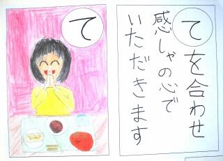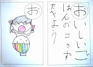 例えば、「あいさつで おいしい給食 始まるよ」「いきものの 命に感謝 いただきます」「うきうきくわくわく 今日の給食何だろな」などという、本校の卒業生が残していったと思われるオリジナルカルタがあります。
