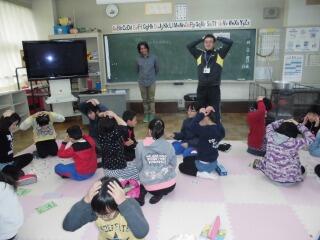 「Hand on your head.」で始まるカルタのゲームが展開されました。