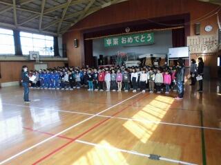 5年生以下の学年が下校した後、6年生から先生方への特別な時間がもたれました。