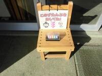本校の正面玄関(校庭側)には今、椅子にスタンプが置かれています。
