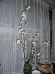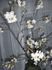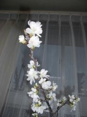 3月7日に一輪だけ咲いた職員室の桜が、2日後の今日、五分咲きになりました。