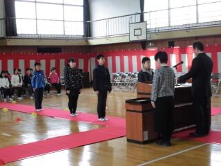 6年生は4時間目に、校長、教頭と一緒に証書授与の練習を行いました。