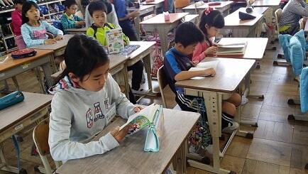 (写真は、やらせではありません(^^)自分たちできちんと読書を始められます)