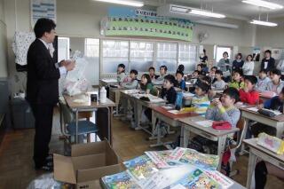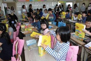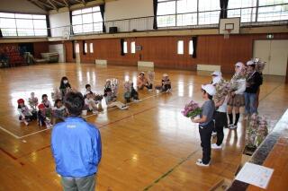最後は、アサガオの種をプレゼント!1年生は、終始笑顔で、すっかり仲良くなれたようです。