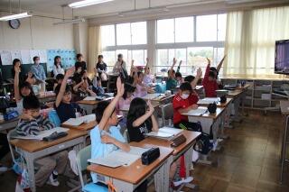 1年生を含めて全校で一斉に行うのは今日が初めてです。