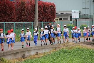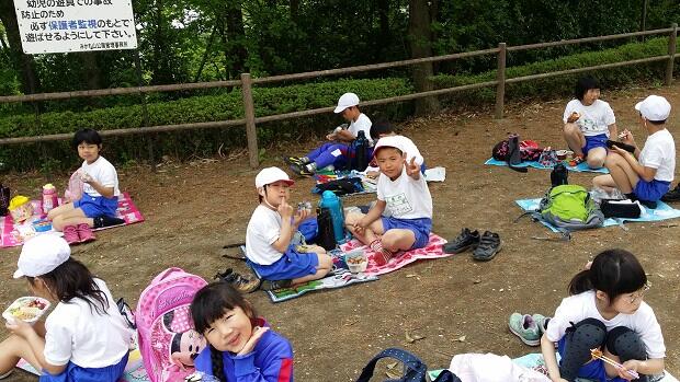 一緒に歩き、一緒にお弁当を食べ、一緒に遊び、帰りはゴミ拾いをしながら帰りました。