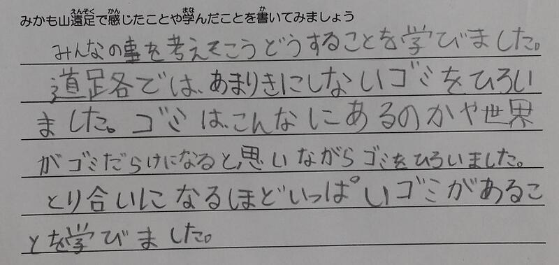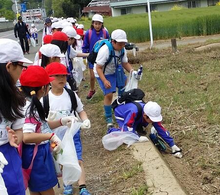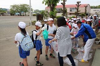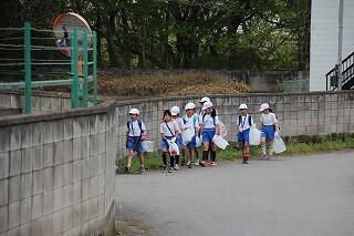 帰りは、道に落ちているごみを拾いながら学校にもどりました。