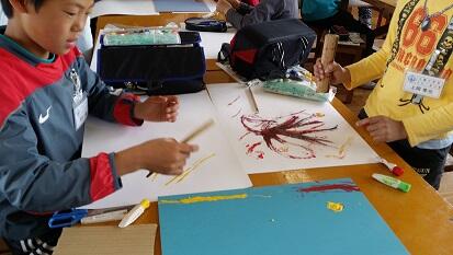 「絵の具ってこんなにぬるぬるしてるんだ。」