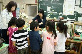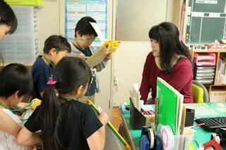 フリーの先生方~図書室の先生、保健室の先生、職員室の先生~と交流しました。