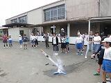 最後には、根岸先生の作ったペットボトルロケットを飛ばし、楽しんで活動することができました。もし、家庭で実験する場合はケガ防止のため、野外の広いところで保護者監督のもと、行ってください。