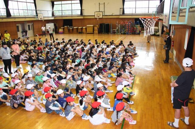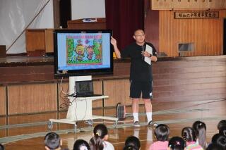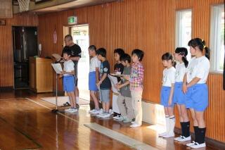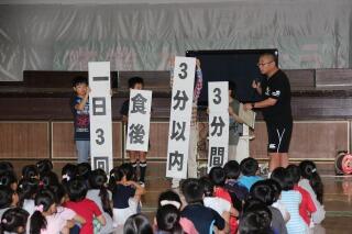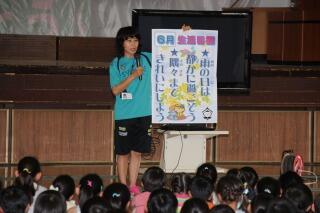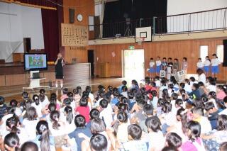 朝会が開かれ運動保健委員が中心になって啓発をしてくれました。