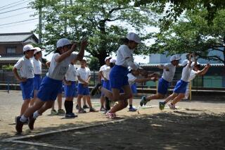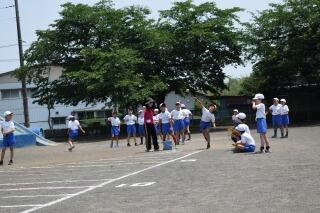 校庭ではソフトボール投げ、50m走、立ち幅跳びが、体育館では反復横跳びと上体起こしが行われました。