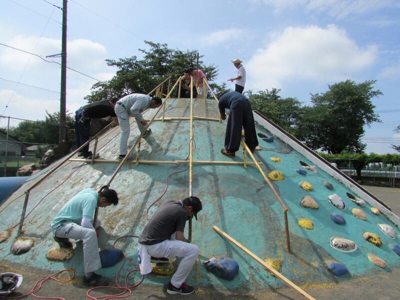 7月15日(日)、「全建総連栃木県建設労働組合」の皆様が、ボランティア活動として「よい子の山」の修復をしてくださいました。さびが出ていた手すりを丁寧に磨き、ひび割れを埋めてくださいました。酷暑の中、早朝から午後まで、皆さん汗びっしょりで作業をしてくださいました。本当にありがとうございました。