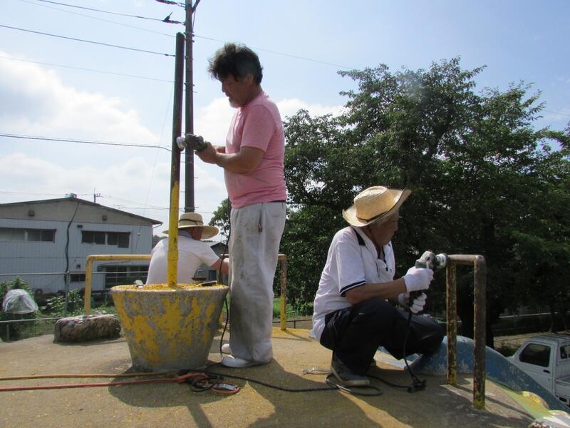 グリーンベルト北側の側溝掃除、よい子の山のペンキ塗り。