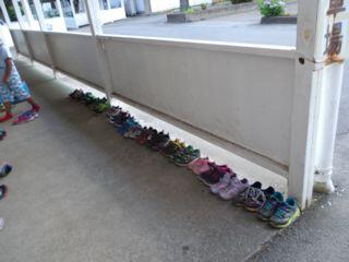 登校班で学校に来たら、靴を揃えて脱ぎます。