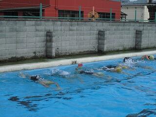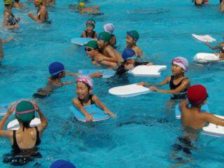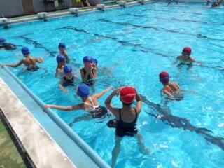 三鴨小は泳ぎの苦手な子のための水泳教室「いるか教室」を設けています。