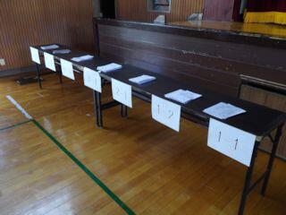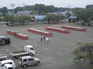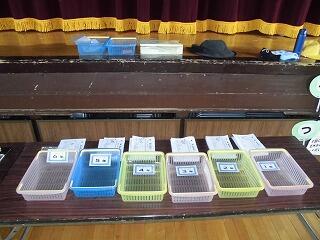 学年ごとに分かれて座ります。東側1,3,5年生、西側2,4,6年生です。
